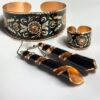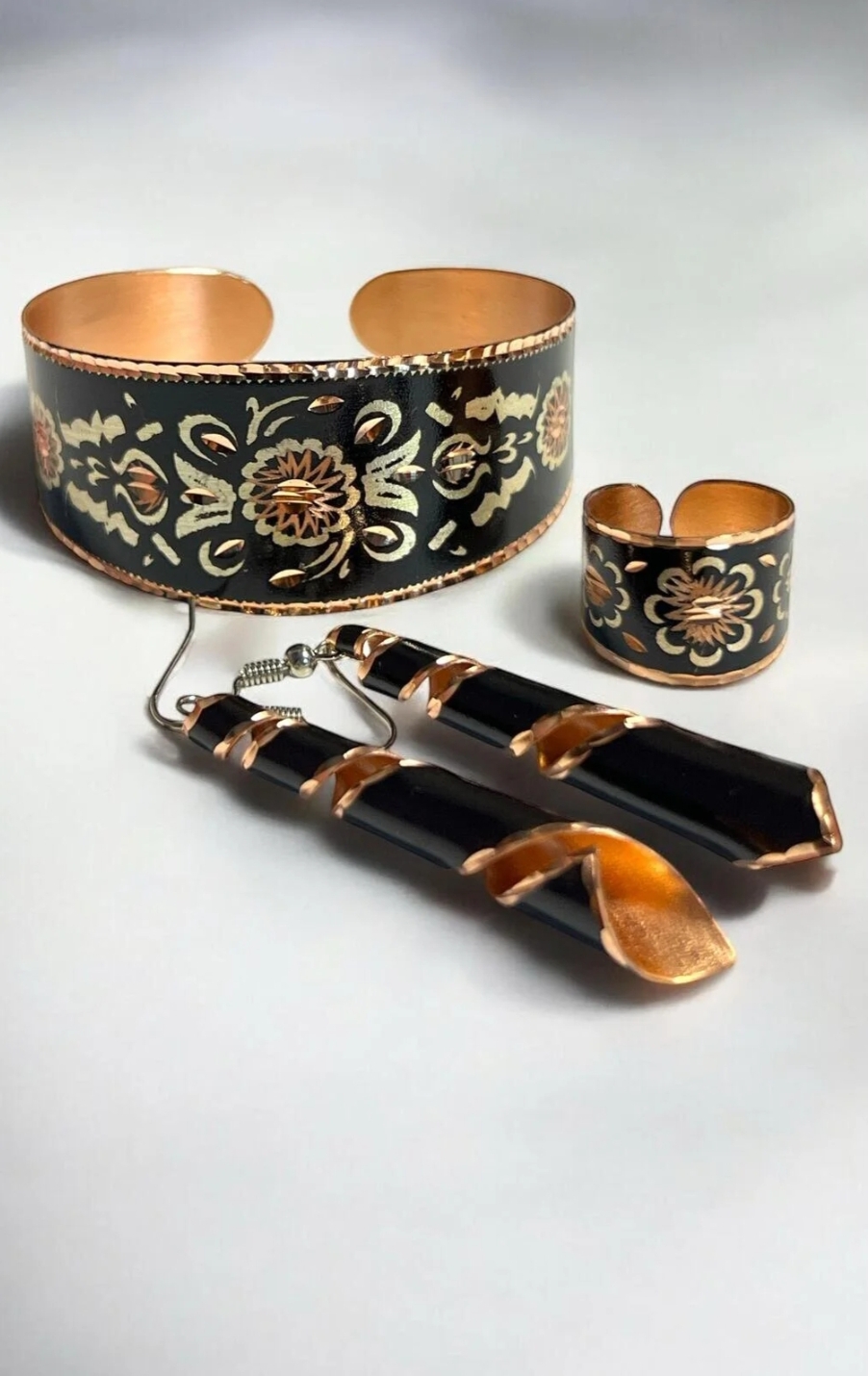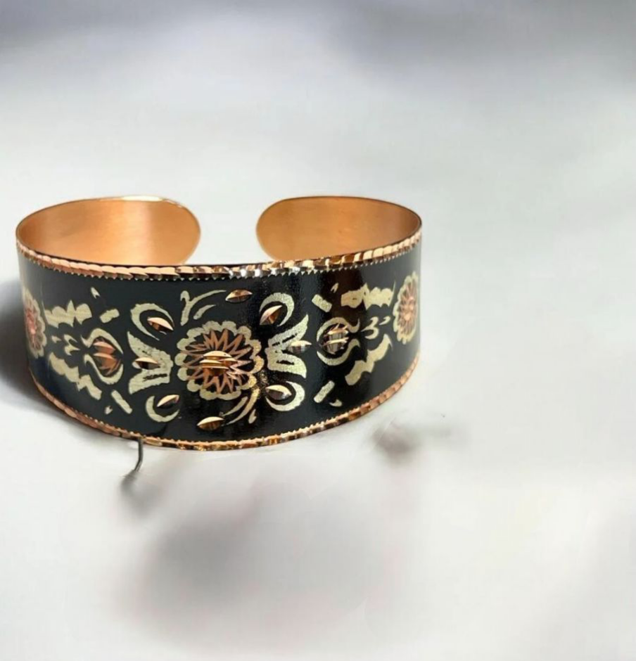 Bransoletka z czystej miedzi z czarną emalią i zdobieniem ludowym