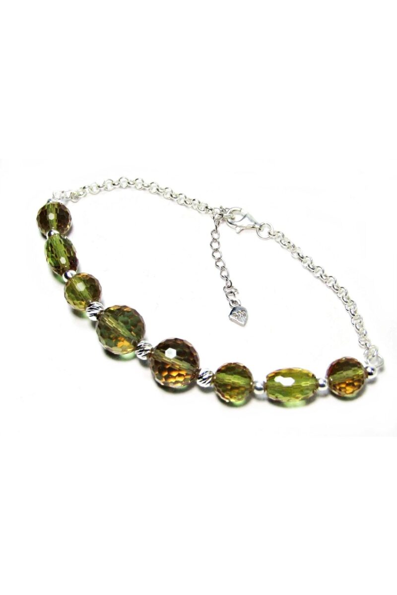 Bransoletka z zultanitem to idealna propozycja dla osób ceniących unikalność i subtelny blask. Ten typ bransoletki sprawdzi się świetnie w codziennych stylizacjach, jak i na bardziej formalne okazje. Zultanit, półszlachetny kamień, wyróżnia niezwykłą zmiennością kolorów, przechodząc od odcieni zieleni do różnych tonów brązu, a kończąc na różowym. Symbolizuje równowagę i pozytywną energię. Działa jak talizman obfitości, spełnienia marzeń oraz harmonii w życiu osobistym. Bransoletka składa się z ośmiu takich samych kamieni zultanitu, oddzielonych kulkami ze srebra. Każdy kamień posiada szlif przypominający plaster miodu. Bransoletka jest na srebrnym druciku, pozwala to idealnie dopasować jej kształt to kształtu Twojego nadgarstka.